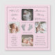 Crea un anuncio de nacimiento que es tan único como tu precioso hijo con este diseño de cuatro fotos de "Hello Little One" que incluyen el nombre de tu bebé, estadísticas de nacimiento, nombres de padres y hermanos. En el centro hay dos líneas de plantilla para tu mensaje personal o puedes usar el nuestro. Este mensaje se encuentra en la parte superior e inferior de las huellas opcionales de su hijo (añada por separado la izquierda y la derecha). Todos los colores de texto y fondo se pueden modificar según se desee. Mostrado aquí de rosa. Diseño por diseños de corazones de vacaciones (derechos reservados) con fotos de marcadores de posición de plantilla mediante Unsplash.