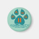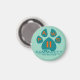 Un imán con el logotipo de la comunidad PAWS 4 en un fondo verde menta