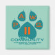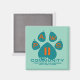 Un imán cuadrado con el logotipo de la comunidad PAWS 4 en un fondo verde menta