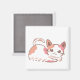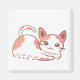 ピンクとオレンジの優しい色合いで描かれた、座っているぶち模様の猫が主役のデザインです。白い背景がイラストのポップさと可愛らしさを引き立て、シンプルながらもおしゃれな印象に。ゆったりと座る姿が癒しを与え、動物好きな方やカラフルな雑貨を好む方にぴったりのアイテムです。冷蔵庫やデスク周りに飾れば、日常にほっこりした彩りを添えてくれます。
