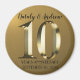 Celebrando 10 años juntos. Feliz décimo aniversario boda. Etiqueta metálica dorada.