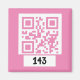 La imagen representa un código QR con el número "143" escrito debajo. El código QR es un patrón cuadrado en blanco y negro con una serie de cuadrados dispuestos en un patrón similar a la cuadrícula. El número "143" está escrito en negrita y negro. El número "143" tiene un mensaje codificado de "I Love You", especialmente usado en los paginadores de los años 90. Según la historia, se remonta a principios del siglo XX desde el faro de Minot's Ledge, en la costa de Cohasset, Massachusetts. La historia comienza en 1895, cuando el faro cambió su patrón de flash tras la recomendación de que todos los faros tuvieran secuencias de flash numéricas. El orden, un rápido destello, cuatro destellos, luego tres destellos, aparentemente fue elegido al azar.
