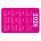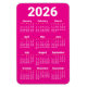 This design features the 2026 calendar with a pink background, white year, white months, orange/gold days of the week, and white dates.