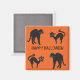 Felices gatos negros de Halloween en un imán de fondo naranja.