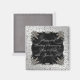 Diseño de imágenes Digitalbcon con un tema de platino plateado floreciente y satinado negro con una variedad de imágenes, formas, patrones, estilos y fuentes personalizados en este singular Boda de aniversario de Silver. Este imán atractivo y colorido viene con letras de texto en personalizable para su ocasión especial y seguro que hará un hermoso recuerdo al gran evento o un recuerdo a la familia y amigos invitados a la celebración.