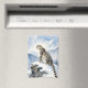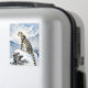 A pretty wildlife Keychain with an illustration of a majestic snow leopard perched on a craggy, snow-covered peak, gazing out at a vast, frozen mountain range.