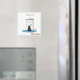 Ilustracion de color de gato mirando fijamente a una nevera cerrada. Parte de la serie de imanes Thru The Cat Flap.