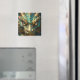 A magnet with an illustration of a gold and turquoise metallic looking dragon.