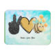 Diseño lindo con texto de "Peace Love Bees", símbolo brillante de la mano de la paz negra, corazón de doodle dorado y abeja caprichosa sobre un fondo de nubes acuarelas.