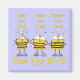 Se ven tres abejas dibujadas a la ligera... una cubre sus ojos, una cubre sus orejas y la otra cubre su boca basándose en lo familiar, no ve mal, no oye mal ni habla mal. Esta leyenda de juego de palabras dice: "no seas malvado". Diseño original de Christie Black de Creations from the Heart.