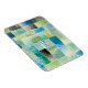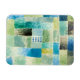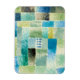 First House In A Settlement by Paul Klee. Abstract watercolor painting of a window surrounded by green, blue and turquoise blocks or squares.