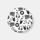 Fondo musical Vintage, accesorios musicales de diseño sin fisuras. Silueta dibujando auriculares de música en blanco y negro, CD de disco, altavoces, notas y dedos gestos de cabra. Ilustracion monocromo Patrón sin fisuras con la temática musical vintage con accesorios icónicos. Nostálgico, musical, creativo, icónico. Surco con motivos musicales para un toque vintage. música, patrón, personalizado, dibujo, silueta, cd, negro, fondo, abstracto, ilustracion, textura, decoración, vintage, amor, blanco, sin costuras, tela, adorno, moderno, plato