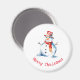 Este bonito imán de vacaciones cuenta con una foto de un muñeco de nieve con un estilo acuático. Con el saludo de 'Feliz Navidad' debajo de la tipografía de escritura roja, el imán hace un holgazán ideal para las medias.
