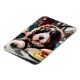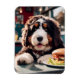 Un adorable Bernerdoodle en la cena con una hamburguesa de queso que ha pedido arte generado por IA