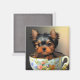 Un imán adorable presenta IA representada en la pintura digital de un cachorro Yorkie (Yorkshire Terrier) en una elegante taza de té florida.