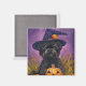 Admire el espíritu de Halloween con este diseño encantador que presenta un perro lindo en un gorra de brujas rodeado de calabazas talladas. Perfecto para añadir un toque de encanto espeluznante a sus celebraciones festivas.