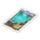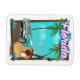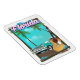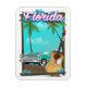 Afiche de viaje estilo Florida Retro, con una guitarra clásica acústica de cuerdas y un auto clásico verde de espuma marina.