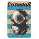 Cartel de viaje de estilo náutico o retro de Cornwall con casco de buceo.