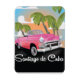 Afiche de viaje vacacional de Santiago de Cuba, poster vacacional cuba con un auto vintage.