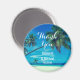 Un imán conmemorativo de agradecimiento de boda. Diseñado con una foto temática tropical que presenta palmeras de coco que se extienden a lo largo de una playa aislada de arena blanca. Aguas turquesas y un cielo azul azur en el fondo. Agregue fácilmente su nombre y fecha de boda.