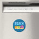 Este bonito ilustracion de playa está decorado con conchas verdes y azules, una estrella de mar dorada amarilla que cruza la arena y la palabra "playa" en un color azul intenso del mar o del océano. Esta colorida obra de arte de los amantes de la playa es el regalo perfecto para quien quiera el mar, la vida en el océano, las playas de arena, los soleados días de verano y el arte original.