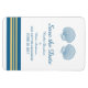 Elegantes y clásicas conchas náuticas Salven el imán Date Flexi con un par de conchas simples y un conjunto de rayas en azul marino oscuro y oro. Esta temática náutica ahorra la fecha se puede personalizar fácilmente con los datos de su boda. Para obtener más opciones de personalización, haga clic en el botón Personalizar.