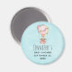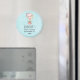 Imán de aviso de evento con un diseño adorable con una ilustración de acuarela. Un globo aerostático decorado con hermosas flores rojas y rosadas. Un pequeño y lindo osito blanco se sienta en la cesta. Fondo azul claro.