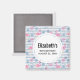 Un imán para guardar la fecha con un patrón divertido y veraniego. Flamencos rosados y piñas sobre un patrón de rayas azul claro con hojas y corazones alrededor.
