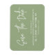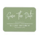 Imán de refrigerador de ahorrar la fecha de caligrafía moderna en color verde salvia. Diseño con una apariencia minimalista simple de solo texto.