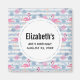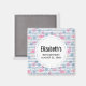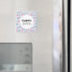 Un imán para guardar la fecha con un patrón divertido de verano. Flamencos rosados y piñas sobre un patrón de rayas azules claras con hojas y corazones alrededor.