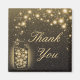 Un frasco de vidrio brillante de luciérnagas doradas amarillas sobre un fondo oscuro de noche moteado de estrellas. Un diseño elegante y nostálgico que recuerda a la época del verano cuando los bichos relámpagos brillan y iluminan las cálidas noches de verano. Un mensaje de agradecimiento al personalizable está escrito en color dorado amarillo en una fuente de escritura fluida. Puede personalizar el mensaje para incluir un nombre o cambiar el mensaje para decir algo como feliz cumpleaños o felicitaciones.