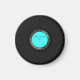 Este divertido diseño presenta un álbum de discos de vinilo negro con una etiqueta turquesa. Personalizar fácilmente el texto de la etiqueta.