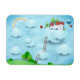 Ilustracion surrealista con pueblo sobre las nubes y las escaleras. Arte digital
