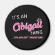 Es algo de Abigail que no entenderías - tipografía de primer nombre con letras mixtas blancas y rosas. El nombre rosado en el tipo de letra decorativa está enmarcado en blanco y coronado con una corona blanca.