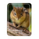 Un tierno chipmunk mira atentamente a la cámara desde una rama de un árbol caído.