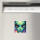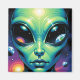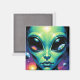 Imán extraterritorial. Un diseño cautivador de otro mundo con un ser extraterrestre con ojos grandes que sostienen las reflexiones de otros planetas, incluyendo la tierra en ellos.