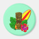 ¡Aloha! Perder este verano y prepararse para sus próximas vacaciones de surf. Tiki, flor de hibisco y tabla de surf.