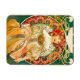 Magnet con la litografía Reverie de Alphonse Mucha (1897). Un retrato de una mujer con un vestido blanco lee un libro, sentado frente a flores rosas y naranjas. Un gran regalo para los amantes del arte Art Nouveau y bohemio.