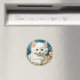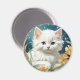 Magnate con gatito de estilo Art Nouveau de Alphonse Mucha! Un gatito blanco y mullido con ojos azules posa con flores amarillas. ¡Un regalo para los amantes del gato y de los coleccionistas Art Nouveau!
