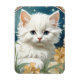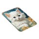 Magnate con gatito de estilo Art Nouveau de Alphonse Mucha! Un gatito blanco y mullido con ojos azules posa con flores amarillas. ¡Un regalo para los amantes del gato y de los coleccionistas Art Nouveau!