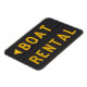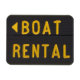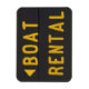 Fotografía de un cartel de tablero de madera con las palabras talladas, pintadas de amarillo, "Alquiler de barcos" y una flecha apuntando a la izquierda. Excelente regalo o acento para cabañas, casas de lago, RVs o cuevas masculinas. Imagen de copyright 2018 de Margaret E. Cmelik.