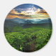 Esta foto muestra rayos solares reventando en gruesas nubes sobre una granja de té