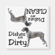 Este imán tiene un Wolfhound irlandés parado en las 4 patas. El texto dice: "Los platos están sucios". Ponga este imán al revés y el mismo Wolfhound irlandés aparece con este texto: "Los platos son limpios". ¡Genial para ese amante de los animales en tu vida! ¿Quiere adoptar un nuevo mejor amigo? Por favor visite petfinder.com para salvar la vida de un animal de refugio/rescate cerca de usted.