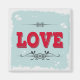 Ilustracion de amor vintage con decoración floral y cardíaca sobre fondo azul en marco grueso