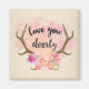 Te quiero, Deerly. Impresión de acuarela floral adorable con cordones de ciervo.