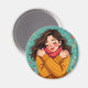 Un bonito imán de estilo folclórico con un chica en un cálido y acogedor jersey que se abraza. Recuerden que el amor propio es importante con este ilustracion de bonito ai.