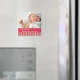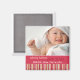 "Amaryllis Stripes" imán de anuncio de nacimiento de fotos rosadas. Personalice esta plantilla moderna y elegante de imán fotográfico con la foto y los detalles de su bebé para un anuncio de nacimiento único.