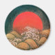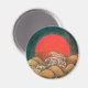 Elegante, colorido paisaje marino con sol rojo, olas de mar en vivos colores negros, marrones y blancos re-elaborados de una antigua miniatura japonesa. Amaterasu es parte del ciclo del mito japonés y también una deidad importante de la religión Shinto. Ella es la diosa del sol, pero también del universo. El nombre Amaterasu deriva de Amateru que significa "brillar en el cielo". El significado de su nombre completo, Amaterasu-ōmikami, es "el gran kami de agosto (dios) que brilla en el cielo". Para Amaterasu también se le atribuye la invención del cultivo del arroz y el trigo, el uso de gusanos de seda y el tejido con el telar.