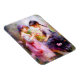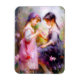 Un cuadro generado por IA de dos amigos admirando flores en un jardín. Sería una bonita decoración de guardería.