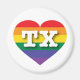 Este imán presenta un corazón de orgullo arcoíris que contiene las letras mayúsculas, en negrita, blancas, TX, la abreviatura oficial de Texas, el solitario estado estrella. Muestra tus verdaderos colores, apoya el matrimonio igualitario y celebra el orgullo gay.